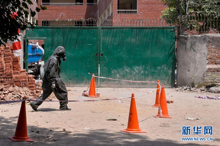 5月6日,在印度新德里,一名印度全國救災(zāi)應(yīng)急部隊(duì)成員在煤氣泄漏事故發(fā)生地附近的學(xué)校檢查。據(jù)警方人員稱,新德里6日發(fā)生煤氣泄漏事故,約有200名學(xué)生出現(xiàn)不同程度的中毒癥狀入院治療。新華社/法新