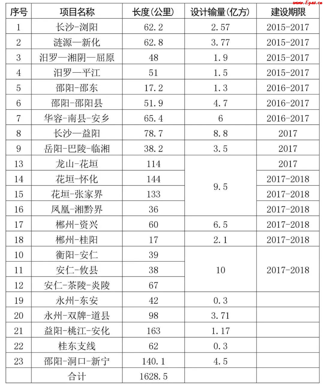 表3:“氣化湖南工程”三年行動(dòng)計(jì)劃建設(shè)管道情況表