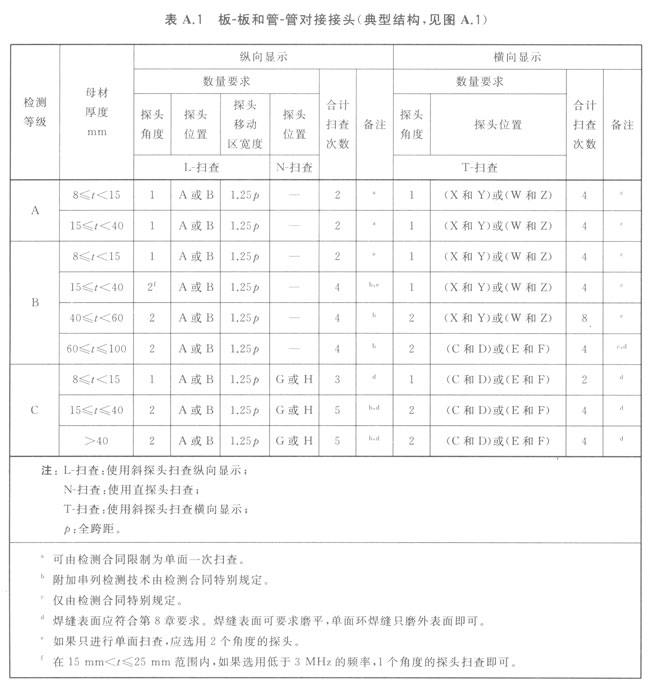備種類型焊接接頭的檢測(cè)等級(jí),見圖A.1~圖A.7和表A.1~表A.7。