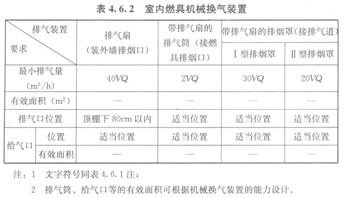 4.6.2室內(nèi)燃具機(jī)械換氣裝置應(yīng)符合表4.6.2的規(guī)定。