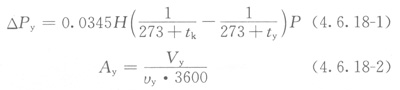 4.6.18煙囪抽力和出口橫截面積可按下列公式計算: