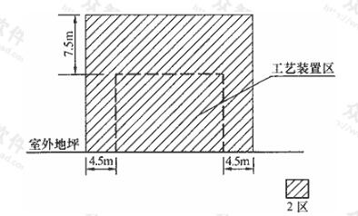 工藝裝置區(qū)邊緣外4.5m內(nèi),放散管管口(或最高的裝置)以上7.5m內(nèi)范圍為2區(qū)。