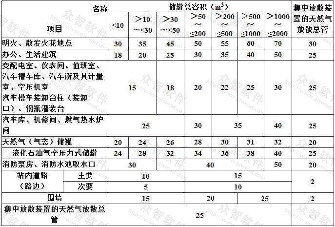 2 表9.2.5中集中放散裝置的天然氣放散總管與站內(nèi)建、構(gòu)筑物的防火間距,是參照本規(guī)范天然氣門(mén)站、儲(chǔ)配站的集中放散裝置放散管的有關(guān)規(guī)定編制的。