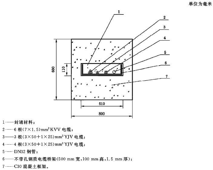 A.2 柔性有機(jī)堵料、泡沫封堵材料電纜貫穿標(biāo)準(zhǔn)試件的安裝方式如圖A.2所示。