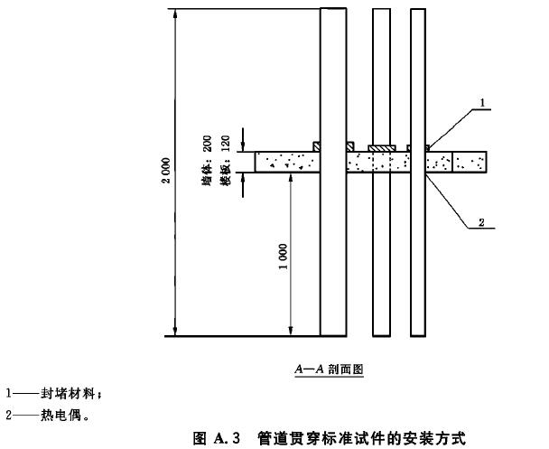 A.4 管道封堵材料安裝在樓板或墻體上進(jìn)行耐火試驗(yàn),樓板和墻體應(yīng)預(yù)留可穿試驗(yàn)用管的孔洞。管道封堵材料的安裝方式應(yīng)足以反映其實(shí)際使用情況,為使試驗(yàn)?zāi)軌蜻M(jìn)行而作的安裝修改應(yīng)對(duì)管道封堵材料性能無重大影響。試驗(yàn)用塑料管材應(yīng)符合相關(guān)產(chǎn)品的國家或行業(yè)標(biāo)準(zhǔn)的要求。