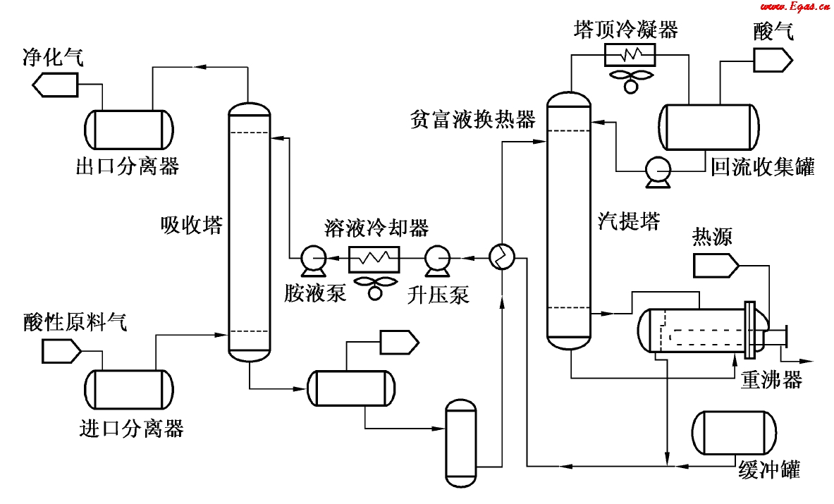 (1)運行的靈活性、適應(yīng)性強,可以根據(jù)不同的酸氣成分和處理要求改裝溶劑。