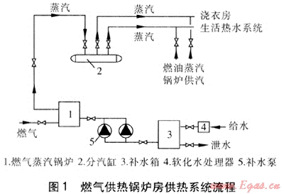 在日常生產(chǎn)中,如何節(jié)省能源,降低污染物的排放,減少費(fèi)用支出,從而為企業(yè)增加經(jīng)濟(jì)效益,這一實(shí)際問題越來越得到重視,并逐步得到解決。沈陽某酒店是集住宿、辦公、餐飲、賣場(chǎng)于一體的大型商業(yè)建筑,建筑面積達(dá)6×104m2。在供暖期,在供熱系統(tǒng)、生活熱水系統(tǒng)、洗衣房所使用的蒸汽由市政熱網(wǎng)供應(yīng)。供暖期結(jié)束后,生活熱水系統(tǒng)、洗衣房用汽由白備2臺(tái)型號(hào)為WNS8-1.25-YQ燃油蒸汽鍋爐(兼作供暖期備用鍋爐)供汽,單臺(tái)產(chǎn)汽量為8t/h。蒸汽鍋爐房到分汽缸(在裙樓地下一層)直線距離為200m,供汽管道規(guī)格為DN 250mm,采用直埋敷設(shè),設(shè)置4座補(bǔ)償器檢查井。本文在對(duì)該酒店實(shí)際用汽量進(jìn)行實(shí)測(cè)的基礎(chǔ)上,對(duì)小型燃?xì)庹羝仩t在酒店建筑中的應(yīng)用與節(jié)能進(jìn)行探討。
