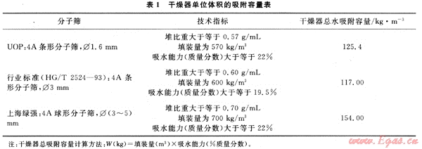 3.1 通過提高分子篩干燥劑性能增大干燥器吸附容量