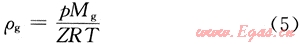 泡沫中的氣相不是理想氣體,采用非理想氣體狀態(tài)方程描述壓力、溫度和氣體密度之間的關系: