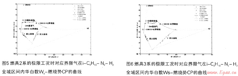 同理可以測得燃具2系、3系、……、5系等不同燃具的氣質(zhì)適應(yīng)域。各系列燃具在極限燃燒工況下對應(yīng)華白數(shù)Ws-燃燒勢CP在i-C4H10-N2-H2區(qū)間內(nèi)的曲線分別見圖5~8