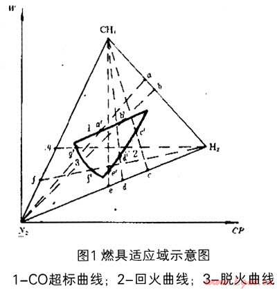 開發(fā)設(shè)計(jì)燃具時(shí),首先要決定使用某類燃?xì)?。根?jù)某類燃?xì)獾幕鶞?zhǔn)氣[1]設(shè)計(jì)、生產(chǎn)后按照基準(zhǔn)氣及界限試驗(yàn)氣的要求(包括壓力)調(diào)整檢驗(yàn)出廠。當(dāng)燃?xì)庑再|(zhì)(成分)發(fā)生變化時(shí),其工作狀態(tài)必然改變。如果燃?xì)獬煞肿兓谀骋唤缦薹秶鷥?nèi),它仍能保持正常工作。這就是燃具對燃?xì)獬煞肿兓倪m應(yīng)能力,稱為燃具的適應(yīng)性。每個(gè)燃具都有一定的適應(yīng)能力。量化這個(gè)適應(yīng)能力,可以用燃具適應(yīng)燃?xì)獬煞肿兓姆秶鷣肀硎?。適應(yīng)燃?xì)獬煞肿兓姆秶鷧^(qū)間稱為燃具適應(yīng)域。適應(yīng)域的范圍越寬,表示燃具的適應(yīng)燃?xì)鈿赓|(zhì)變化的能力越強(qiáng)[2]。