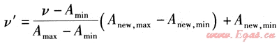 該方法是對初始數(shù)據(jù)進行的一種線性轉(zhuǎn)換。它是將屬性A的一個值v映射為v′且有v′∈[Anew,min,Anew,max],具體映射計算式為: