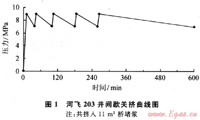 河飛203井間歇關擠承壓堵漏壓力變化曲線見圖1。