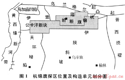 杭錦旗探區(qū)(包括杭錦旗區(qū)塊和杭南區(qū)塊)位于鄂北,橫跨伊盟隆起和伊陜斜坡兩大一級構(gòu)造單元,總面積為9825km2。根據(jù)基底頂面起伏、蓋層發(fā)育情況以及構(gòu)造形態(tài)特征,該區(qū)又可劃分為烏蘭格爾凸起、公卡漢凸起、杭錦旗斷階、伊陜斜坡及天環(huán)向斜一角等5個(gè)次一級構(gòu)造單元(圖1)[20~21]。在地形特征上,杭錦旗探區(qū)是鄂北地區(qū)長期繼承性古隆起,被認(rèn)為是鄂北油氣運(yùn)移的有利區(qū)。