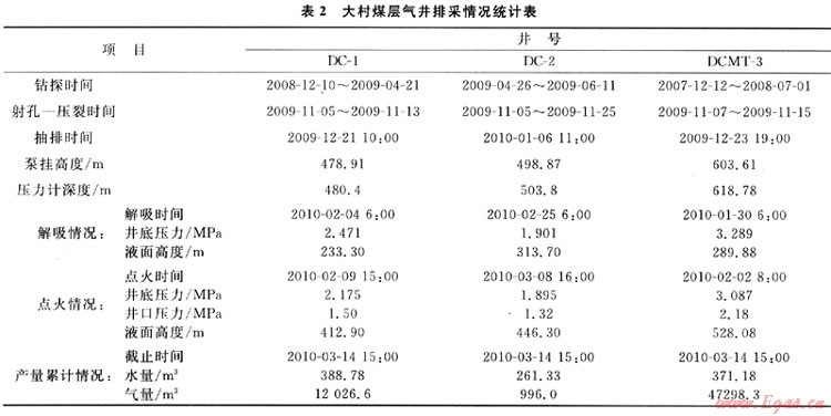 抽采40余天煤層開始解吸,壓力逐漸上升,進入產(chǎn)氣階段。DC-1井、DC-2井、DCMT-3井于2010年2月9日、3月8日、2月2日先后點火成功。到6月30日共計采出地層水2005.4m3(含溢流);采出煤層氣共計35.1×104m3。