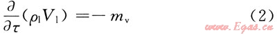 2) 液體的質(zhì)量守恒方程: