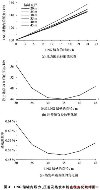 3.1 LNG儲罐直徑的影響