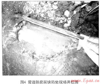 開(kāi)挖發(fā)現(xiàn)此處出現(xiàn)4×3cm的防腐層破損