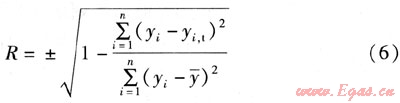 在利用上述模型進(jìn)行預(yù)測時(shí),需要作相關(guān)系數(shù)檢驗(yàn),以判定預(yù)測模型的合理性和適用性。相關(guān)系數(shù)是描述兩個(gè)變量之間的線性相關(guān)關(guān)系密切程度的數(shù)量指標(biāo),用R表示。