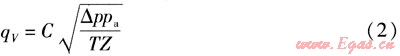 將數(shù)據(jù)qV=3000m3/h,ρn=1.293kg/m3,L=273.15K,pg=5kPa,p0=100kPa,pn=101.32kPa,t=20℃,△p=0.74377kPa代入式(12),可求得:K=4025.3021。