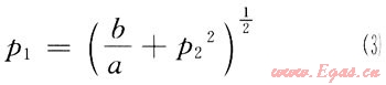 式(2)中a、b為常數(shù),令v=0,則p1與p2關(guān)系為: