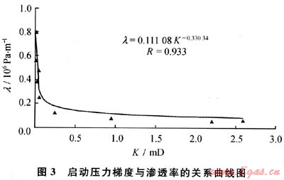 2.2.2滲透率與啟動壓力梯度的關(guān)系