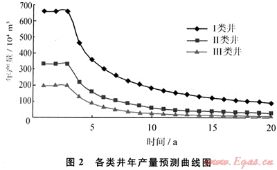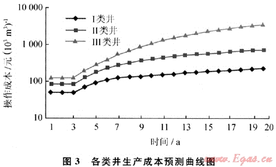 蘇里格氣田儲層非均質(zhì)性強烈,有效儲層規(guī)模小且變化大,本文參考文獻[1]、[2]對該氣田儲集層進行了Ⅰ類、Ⅱ類、Ⅲ類的分類。其氣井生產(chǎn)特征如下:①單井產(chǎn)量低,壓力下降快;②氣井投產(chǎn)后,自然穩(wěn)產(chǎn)期短,早期遞減速度較快,后期較慢,單井經(jīng)濟累計產(chǎn)量?。虎蹥饩谧匀环€(wěn)產(chǎn)期,單位采氣成本較低,在遞減生產(chǎn)期后期單位采氣成本上升較快;④在低投資、低成本條件下,Ⅰ類、Ⅱ類井具有一定的經(jīng)濟效益,Ⅲ類井在目前經(jīng)濟、技術條件下無經(jīng)濟效益。