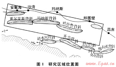 研究區(qū)位于準噶爾盆地南緣的中、西段,西起奎屯,東至昌吉,東西長約500km、南北寬40km,勘探面積約20000km2。區(qū)域構(gòu)造位置為準噶爾盆地南緣山前斷褶帶二、三排構(gòu)造帶(圖1)。其二、三維地震剖面的年度跨度大,涉及1979、1985~1993、1996~1999、2000~2008年等多年度采集、處理的資料。連片解釋選用了其中的二維測線共147條段,剖面總長4072.05km,三維資料639km2。分析這些資料可以看出,資料處理的年度、單位及參數(shù)等都不盡相同,特別是基準面和填充速度的不統(tǒng)一,導致剖面形式(含浮動面及多種固定基準面)相差較大,存在老資料難以統(tǒng)一使用的問題。