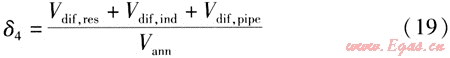 令全年燃氣平均溫度Tav=Tmeter,并將式(8)代入式(9),則δ2的近似計算公式為: