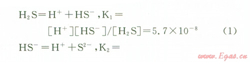 主要存在H2S、HS-、S2-3種形式。根據(jù)上式可以繪出H2S、HS-、S2-3種形態(tài)硫在不同pH值下的摩爾百分含量圖(圖7[8])。
