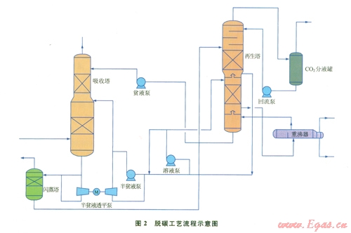 1)高C02凈化度:可將C02脫除至l.5%以下。通過調節(jié)貧液、半貧液進入吸收塔上、下段的比例可以輕松控制凈化氣中的C02濃度。