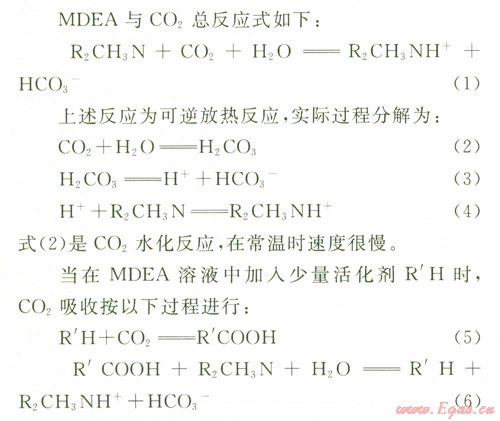2)由于MDEA同時也是一種脫硫劑,在脫碳時,可同時脫除硫化物,不增加設備和能耗。