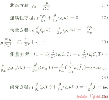 2)蜂窩陶瓷擁有較大的比表面積,氣體和固體間的對流換熱系數(shù)足夠大,氣體和固體間存在著局部熱平衡,即在任一處它們的溫度相等(單溫度模型)。
