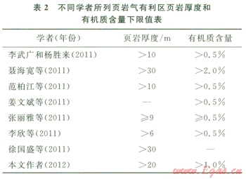 頁巖的厚度和頁巖中有機(jī)質(zhì)含量是評價(jià)頁巖氣有利區(qū)段的重要指標(biāo),但對于頁巖的厚度和頁巖中有機(jī)質(zhì)含量的有利界限,目前學(xué)術(shù)界尚未形成一致認(rèn)識[23-25]。