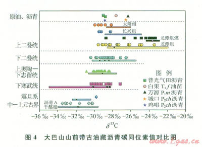 通過生物標(biāo)志化合物和碳同位素值的對比分析,可以看出,南大巴山二疊系、三疊系的瀝青和油苗的主力烴源巖應(yīng)為上二疊統(tǒng)烴源巖,但不排除有下志留統(tǒng)烴源巖的貢獻(xiàn),這與毗鄰南大巴山的普光氣田二、三疊系氣藏的氣源巖類似[7-9]。