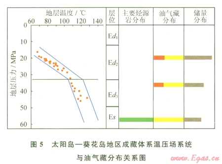 溫壓場(chǎng)分析認(rèn)為,與中部海南月東披覆構(gòu)造帶成藏體系相似,東部太陽島—葵花島成藏體系在地層埋深達(dá)到3
