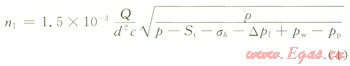 當(dāng)施工壓力PE2大于或等于PE1時,則在硬煤中可以形成新的裂縫;當(dāng)兩者相等時,則剛好可以形成新的裂縫。此時的投球數(shù)即為允許的最少投球數(shù)n0,即