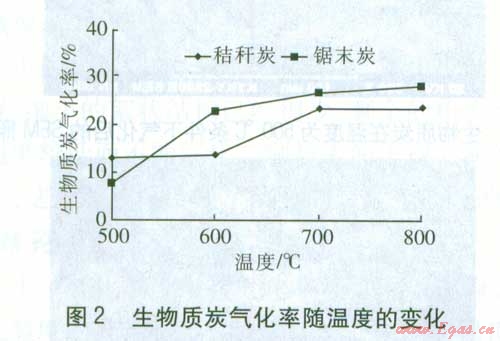 ①溫度對生物質(zhì)炭氣化率的影響