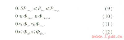 約束條件主要包括設(shè)備性能約束、設(shè)備負(fù)荷率約束、能流平衡約束條件。