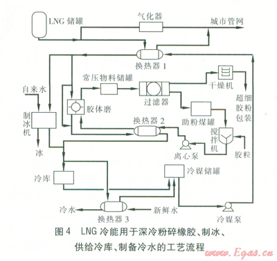 針對(duì)上述特點(diǎn),遠(yuǎn)期擬開展LNG衛(wèi)星站冷能用于深冷粉碎橡膠、制冰、中小型低溫冷庫(kù)、發(fā)電的研究以及LNG的梯級(jí)利用等。