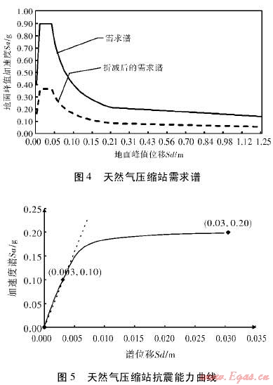 (4)在反映不同破壞等級的建構(gòu)筑物或設(shè)施脆弱性曲線上,查找對應(yīng)上述譜加速度(位移)的概率值,即為該燃?xì)庀到y(tǒng)可能遭受特定破壞等級的可能性大小。