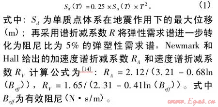 (1)將設(shè)施所在場地的Sa-T形式的地震加速度反應(yīng)譜轉(zhuǎn)化成Sa-Sd形式的需求譜;