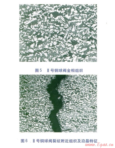 對I號、Ⅱ號銅球閥的金相組織[1]及裂紋進行分析,結果如下:
