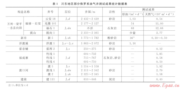 然而,在川東地區(qū)眾多侏羅系顯示良好的鉆井中,僅有少數(shù)幾口實施了中途測試或完井測試,并且獲得了類似川中侏羅系的工業(yè)油流(表1)。例如,新市構造翼部鉆探的新5井在鉆至珍珠沖組l 773.22~1
