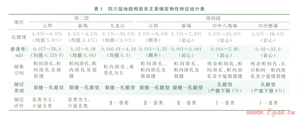 在強烈壓實、膠結(jié)等作用下,l四川盆地陸相層系各套儲層物性均較差(表1)。但在燕山中晚期,川西和川西北大部地區(qū)連續(xù)沉積了下白堊統(tǒng),部分地區(qū)還沉積了上白堊統(tǒng)、侏羅系及須家河組,砂巖深埋;川中及大川東遭受剝蝕,砂巖埋藏較淺。燕山期剝蝕量:川東北、川東南、鄂西渝東剝蝕厚度介于l500~3500 m,須家河組和侏羅系砂體最大埋深小、壓實作用相對較弱、物性相對好;川西剝蝕厚度小于
