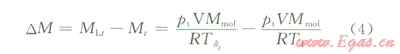 根據(jù)理想氣體狀態(tài)方程pV=nRT可變形為M=pVMmol/RT,得到DM與儲(chǔ)罐溫度的關(guān)系式: