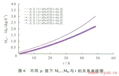 式中MLt為(t,t+dt)時(shí)間內(nèi)進(jìn)入儲(chǔ)罐的LNG流量,kg/h;DM為(t,t+dt)時(shí)間內(nèi)儲(chǔ)罐中BOG的增加量,kg;MBt為(t,t+dt)時(shí)間內(nèi)儲(chǔ)罐排出的BOG流量,kg/h。