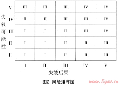 (1) 危險的嚴重性作矩陣的列。首先對危險的嚴重性劃分為一些具體的等級,劃分的具體辦法可根據(jù)系統(tǒng)及造成的損失大小來確定,即可以定性描述也可定量描述。