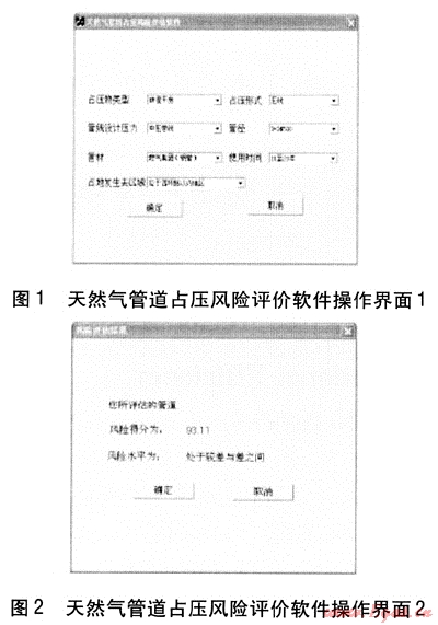 以天然氣管道占?jí)弘[患模糊綜合評(píng)價(jià)方法為基礎(chǔ),根據(jù)占?jí)弘[患影響因素權(quán)重及各因素水平的評(píng)分結(jié)果,編制占?jí)弘[患風(fēng)險(xiǎn)評(píng)估軟件。圖1、2為天然氣管道占?jí)猴L(fēng)險(xiǎn)評(píng)價(jià)軟件操作界面。