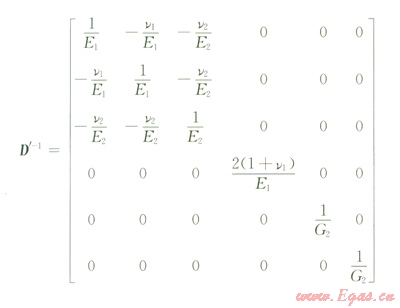 式中A1為平行于各向同性面上的彈性模量或泊松比;A2為垂直于各向同性面上的彈性模量或泊松比。